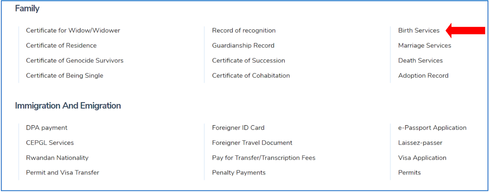 This e-service allows Rwandans to apply for a birth record certificate. The application is either automatically processed and generated by the Civil Registration System or manually processed by local government authorities at the sector level.