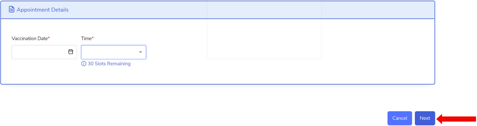 Fill in the Appointment Details, then click Next to proceed.