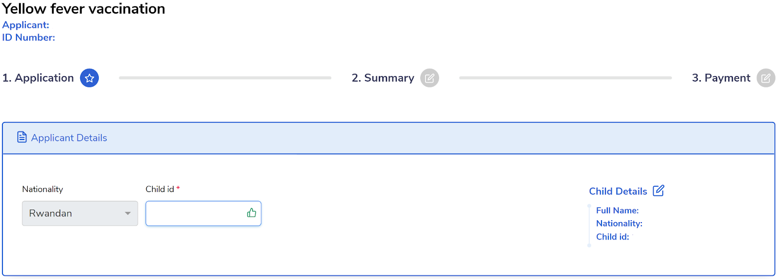 For a Child application, enter the child ID, and the child details will appear on the right side of the page.