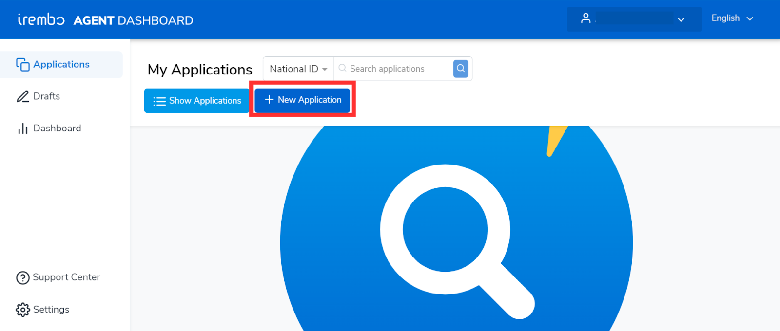 Click the "new application" icon to start a new application.