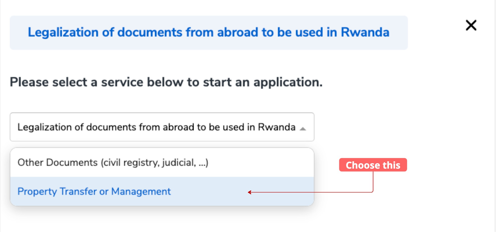 Step 3: Choose to apply for “Property Transfer or Management.”