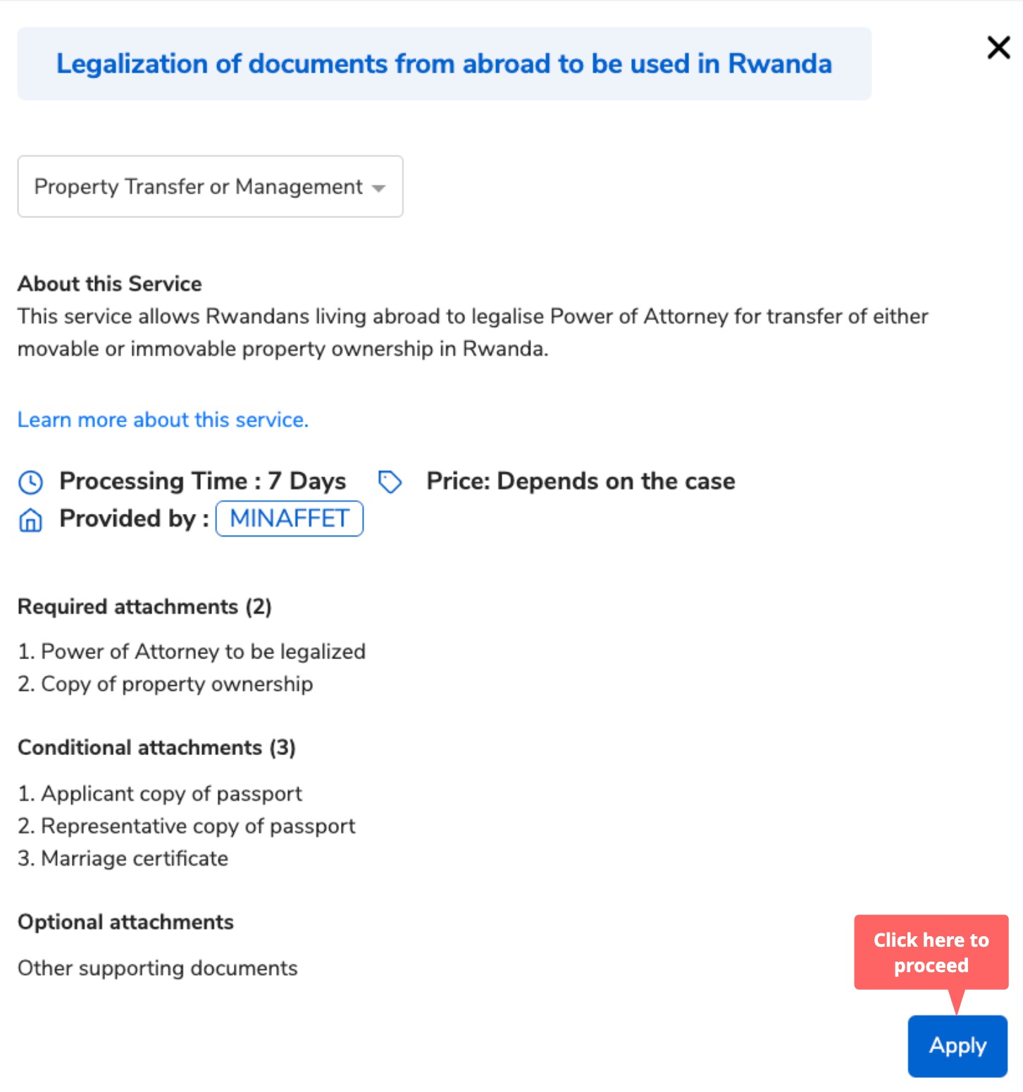 Here is a step-by-step on how you can easily help an applicant legalise their power of attorney to transfer property in Rwanda.