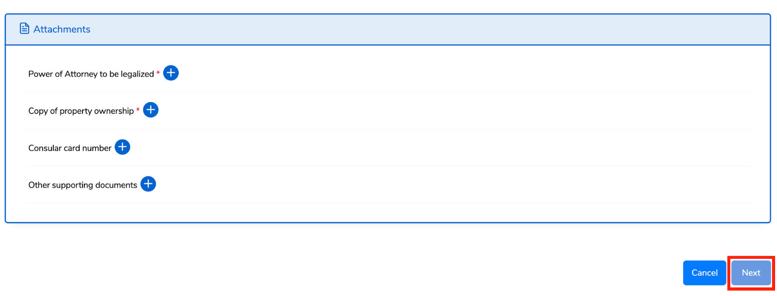 Step 7: Upload the requested supporting documents in PDF format (maximum 200 KB each) and click Next.