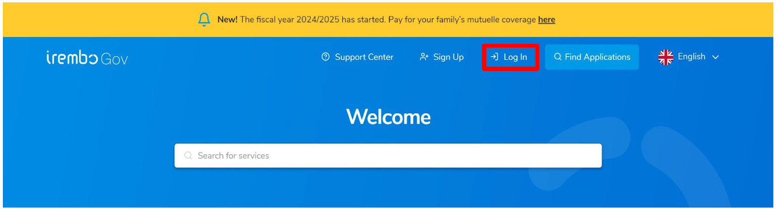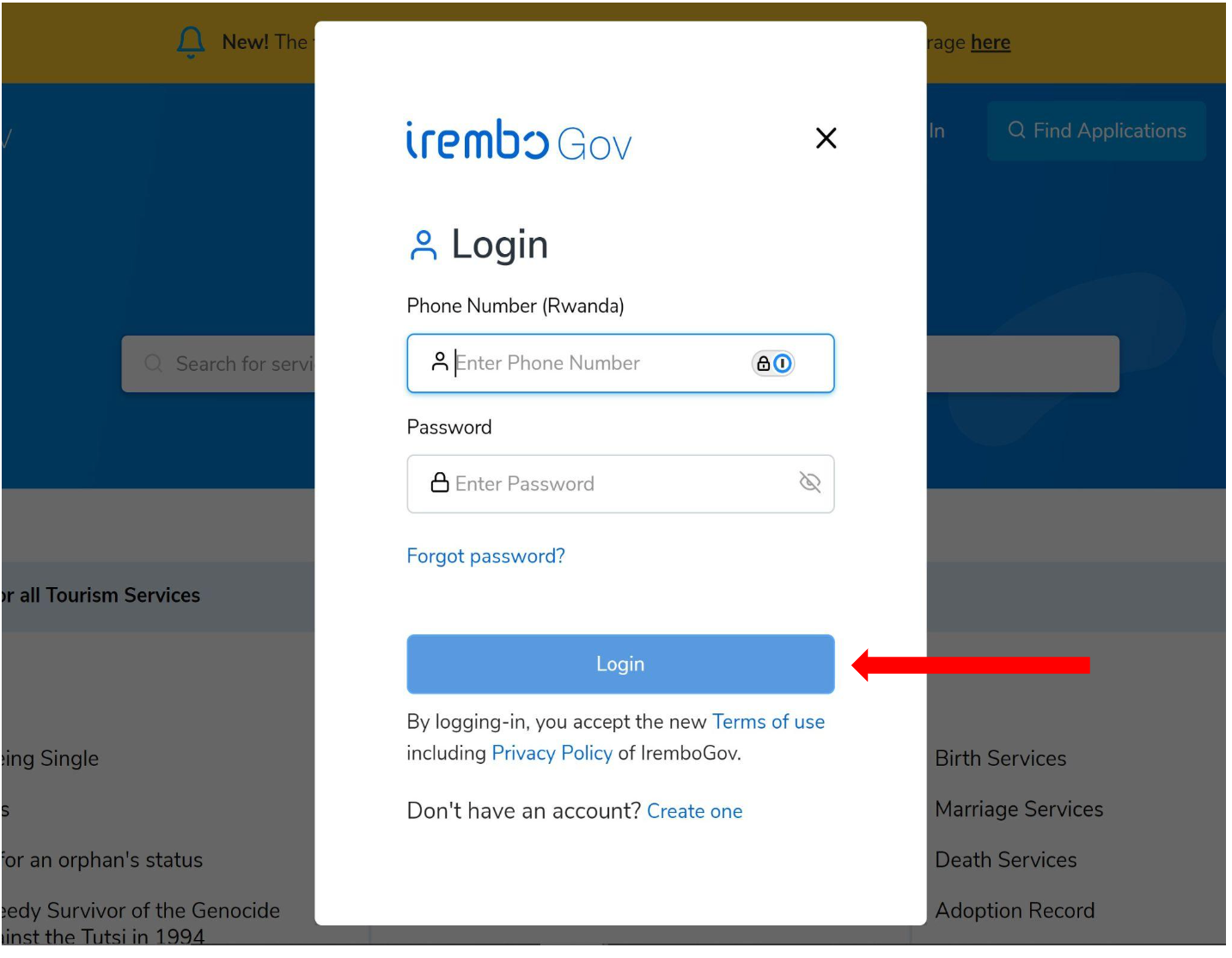Visit the Irembo platform at www.irembo.gov.rw and log into your agent account.