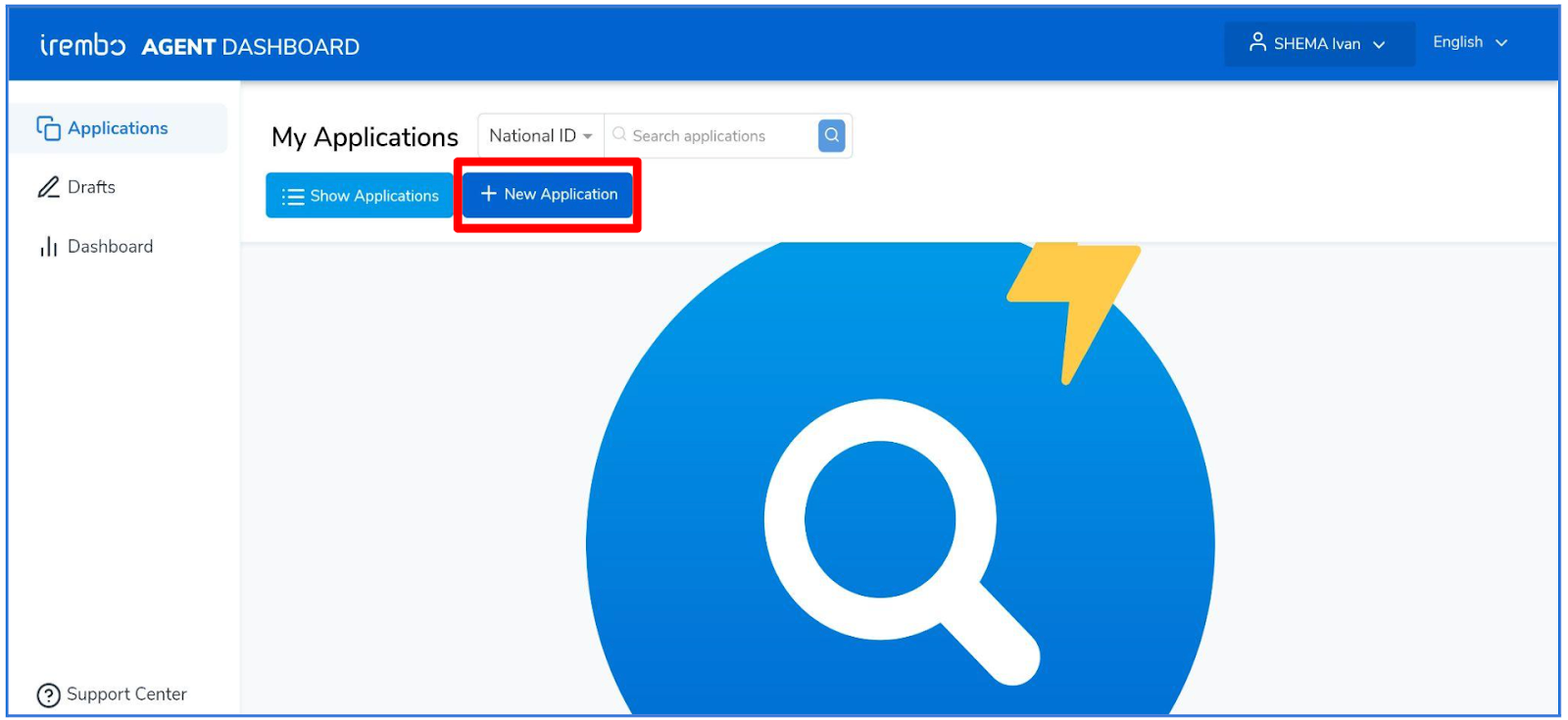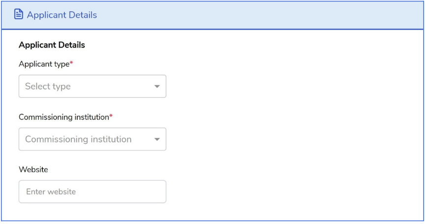 Applicants type, and if it is an individual, continue to add their Identification ID.