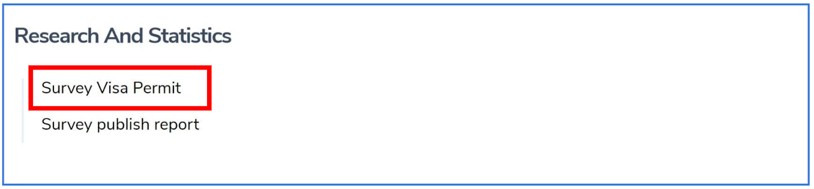Under the “Research and Statistics” category, select “Survey Visa Permit”.