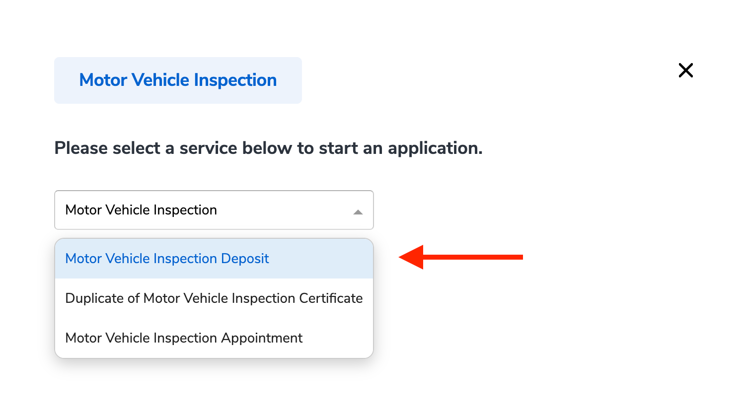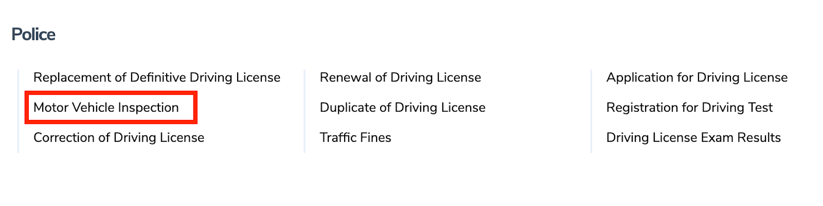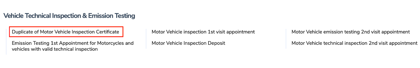 Under the Vehicle Technical Inspection & Emission Testing category, click on Duplicate of Motor Vehicle Inspection Certificate.