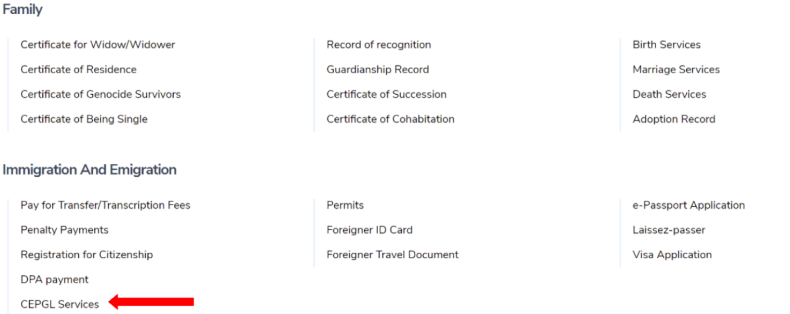 Under the “Immigration and Emigration” category, click on CEPGL Service.