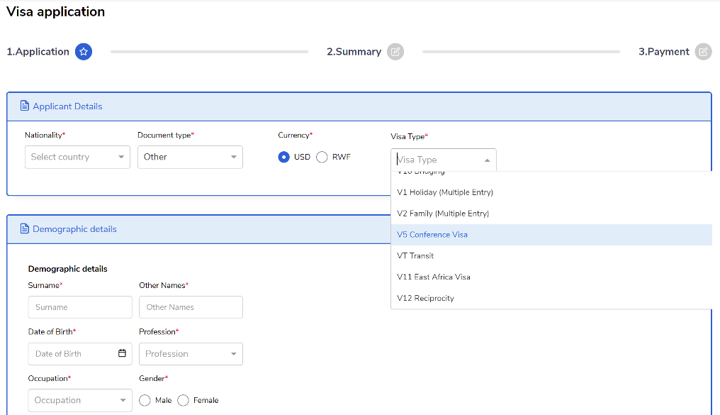 NOTE: Applicants can choose to pay in United States Dollars (USD) or Rwandan Francs (RWF). The price will depend on the Visa Type.