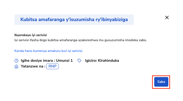 Reba ko amakuru watanze ari yo, ushyiremo nomero ya telefone na/cyangwa imeyili (email) y’usaba, urebe kuri paji y’amakuru watanze, maze ukande kuri Emeza.