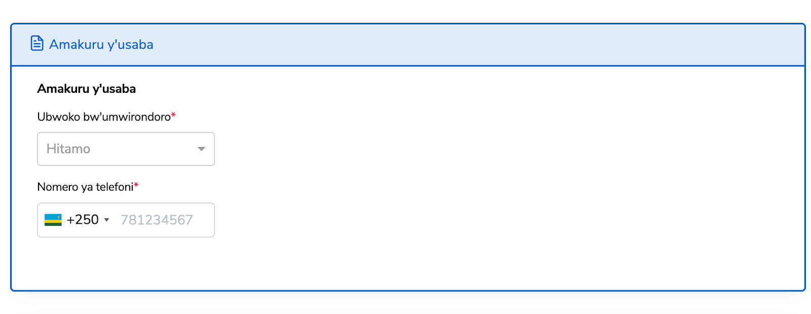 Reba neza ko amakuru watanze ari ukuri, andika nomero ya telefoni na/cyangwa imeyili y’usaba, kanda mu kadirishya ko kwemeza maze ukande kuri “Ohereza”.