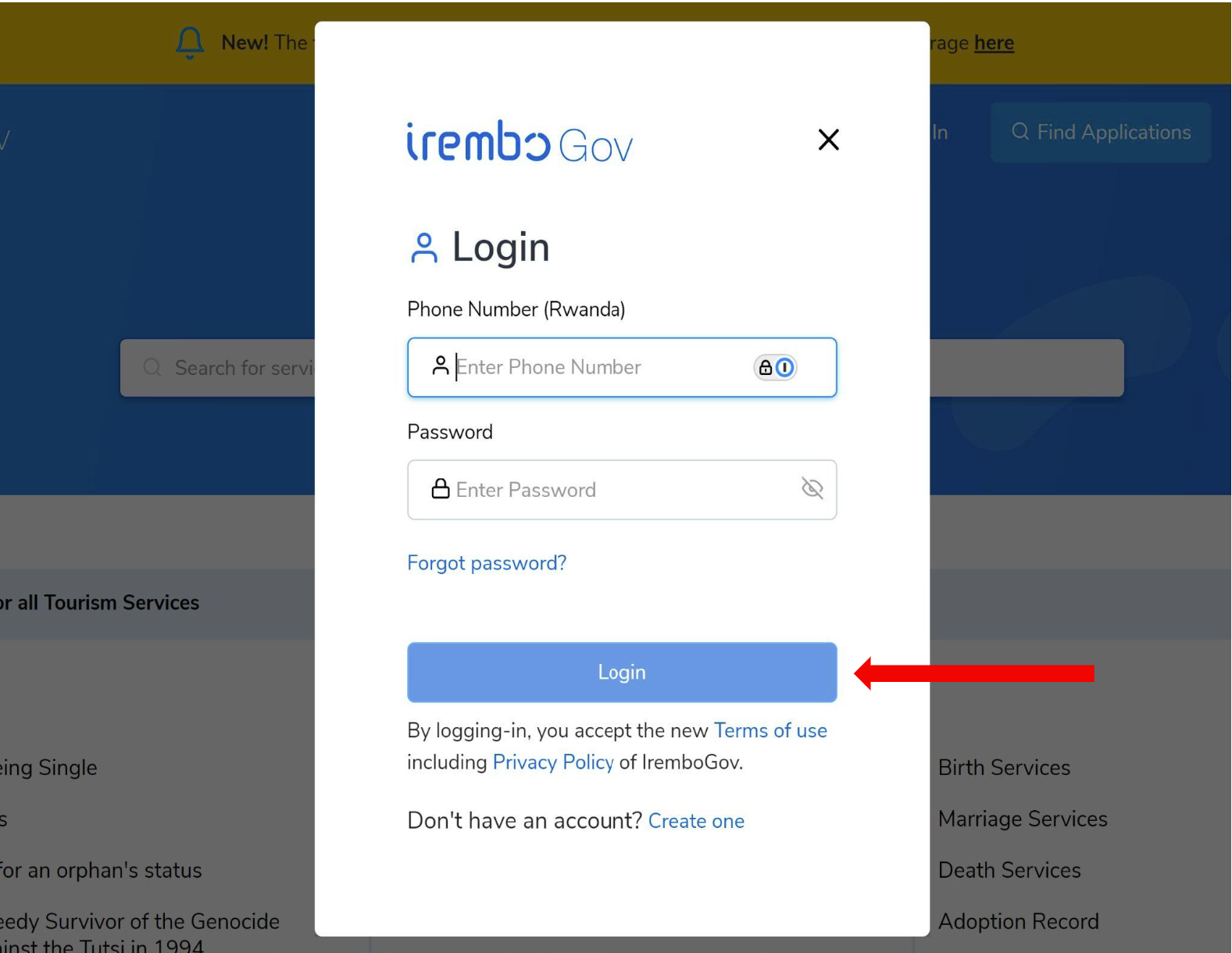 Sura urubuga IremboGov kuri www.irembo.gov.rw hanyuma winjire muri konti yawe yu umu Ajenti.