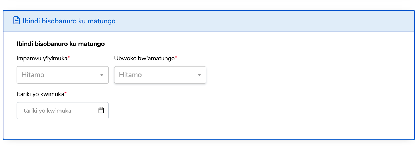 Shyiramo amakuru yo Kwimuka harimo Aho aturutse n'Aho agiye.
